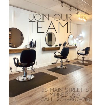 In search of an energetic, passionate, Licensed Hairstylist to complete our hair, nail, tattoo & lash salon on Main Street in Minnedosa.