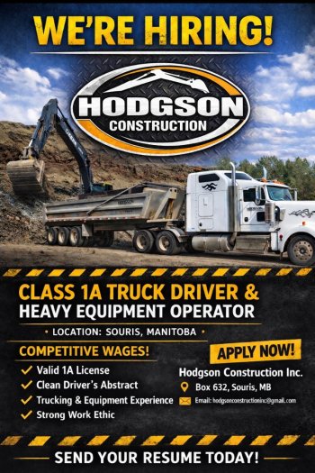 Hodgson Construction is looking for an experienced Class 1A Driver and a Heavy Equipment Operator!