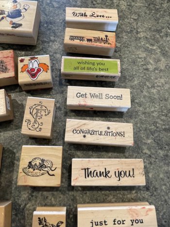 Large quantity of rubber stamps which can be used in creating cards, scrapbooking or other artwork. Some with original price tags on them for $10. Most have never been used. Selling as a lot.