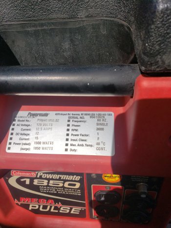 Coleman 1850w /1500w generator, runs good, good condition