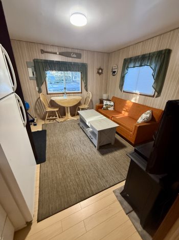 Great end of the Street location that adds extra parking ,privacy & fire pit area . 3 Piece bath , kitchen , living room plus 2 Bedrooms and a pull out couch for lots a sleeping space . All furniture seen included & long term lease signed . Waking distance to all attractions & take a look at all the great amenities that the Park has to offer
