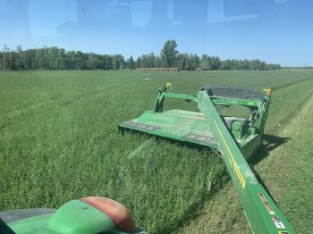 2023 C400 John Deere mower conditioner, 13 foot cut, hydraulic tilt, V10 roll conditioner