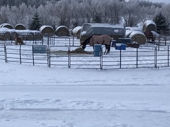 Round bales about 700 lbs. Made for horses, but are a bit dusty last years hay. Mostly grass with a scattering of Alfalfa. Would be great for cows.