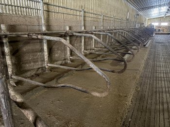Stalls from a free style dairy barn. Main posts are bolted to cement, everything else is mounted with bolted clamps. 79 posts and stalls. 95 inches in length. adjustable neck rail. $50 per stall and post section.