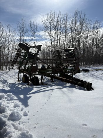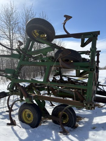 JD 610 chisel plow , 25 feet, 10 inch shovels , JD mulchers vg shape 18 ? tines, walking axles on main frame and also on wings . Tires good shape. No welds . Located 10 mins. from Dauphin , MB. Call or text 1-204-648-7585. Asking $10,000 obo.
