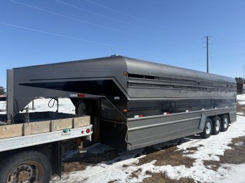 Bluehills 7000 lb tri-axle 7.5x26x7.2 trailer, mint shape, good tires, receiver hitch on back, rubber bumper, black plexiglass covers for side air panels, vents on top, horse ties outside, mainly hauled riding horses, and calves spring and fall to pastures, reason for selling getting new bigger trailer from Bluehills. Located at Roblin MB, Canada Serious Inquiries only, $32,000 OBO