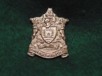 Defunct Ontario Police Forces: Fort William - Port Arthur Antique 3 cap badges & 1 patch lot. Very nice cap badges - the smaller Port Arthur one is very rare I'm told as it does not have the East West Arch depicted on it - so quite old (No Lugs on reverse on this badge it was once on a display board) - other 2 have original lugs - no brass cotter pins with them. Patch is used but in vg condition. These Police Depts disbanded in 1970 when these 2 cities amalgamated to form Thunder Bay. These are obsolete and for collecting purposes only.