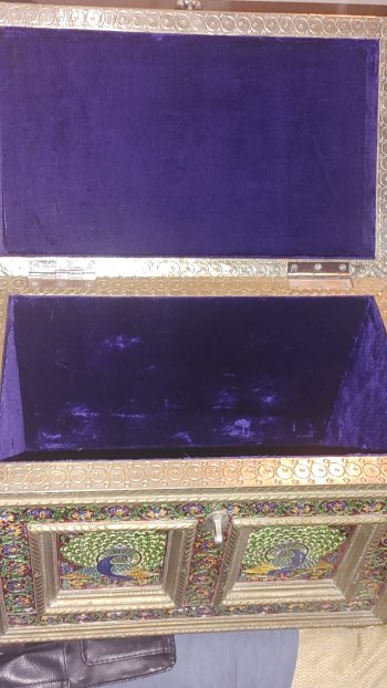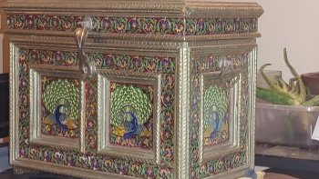 Hi I have a Beautiful vintage handcrafted wooden & metal Meenakari trunk with a peacock design.
