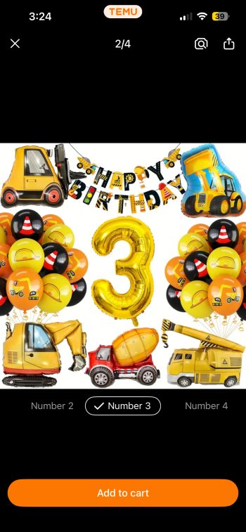 This is fantastic Construction Birthday set up with number 3, for a child who loves construction trucks! Comes with 5 extra large construction trucks foil balloons. The second picture is only for dimensions and quantity reference.