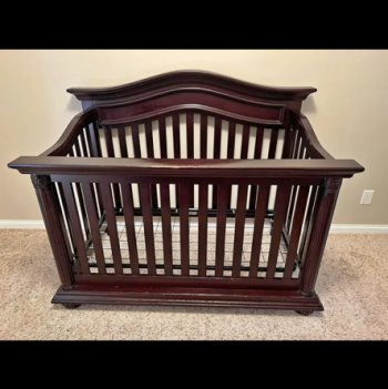 Dark wooden baby crib in great condition. Light scuffing on the top from a belt buckle