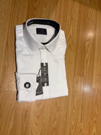 Brand new with tags, men's white dress shirt. Size Medium neck 15.5. White. Non-smoking home. Note: Re-posting ad as my email was not working.