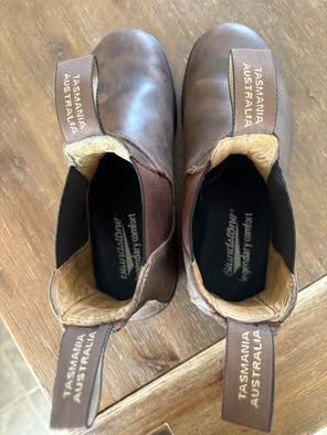 Authentic blundstones. I would say newer shape. Inside is like new, tabs like new as I never pull or use the tabs. Always been sprayed and mink oiled. Original brown colour. Size 5 UK or 8 woman?s. $150 OBO etran.