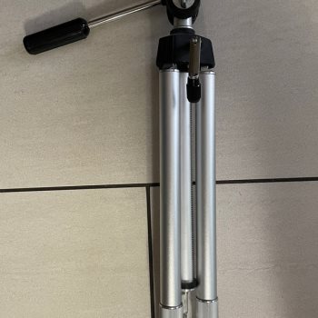 Tripod extends to three feet. The top rotates up and down and sideways. Can be used for camera or video camera. Has the base with screw to attach to camera