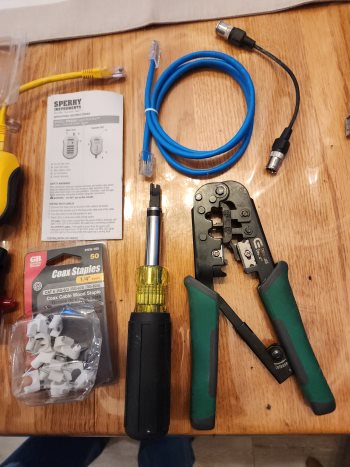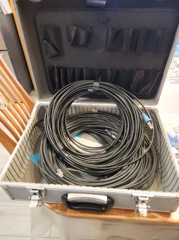 Over 100 ft of Cat 5e cable. Comes with tools, miscellaneous, & case.