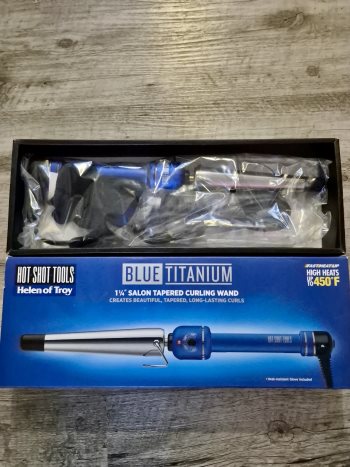 Never got the chance to use it so pretty much new, blue titanium curling ward heats up to 450F.