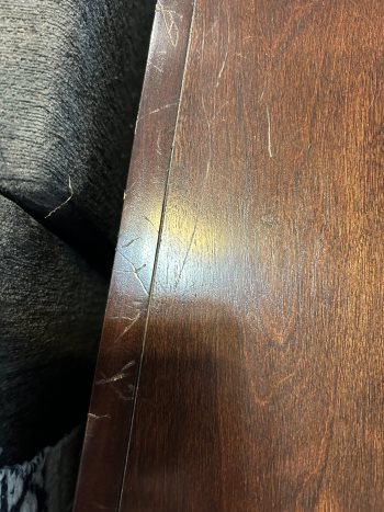 A few small scratches on one side of top edge of cabinet