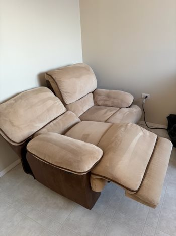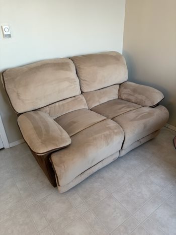 Reclining Love seat. $200, Cash only, no e-transfer, no holds no delivery bring help to pick up. Call before you come out.