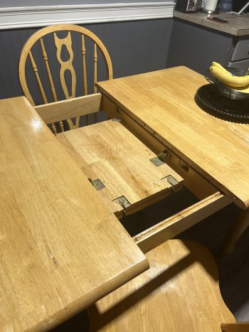Kitchen table and 4 chairs extendible with hidden leaf under table 36?x 48? (3? x 4?) extends 36?x60?(3?x5?) for a quick response. Text at 204-761-9106 or call at 204-728-1059.