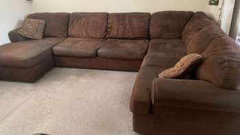 Huge 3 piece Selection Couch Brown in colour, great condition has Love Seat, Couch and Day Bed. Measurements are 140 inches in length, 59 inches width on one side and 88 inches on the other side as shown in the picture below.