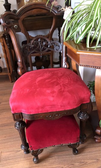 Antique Victorian Chair/Red Velvet Seat & Matching Footstoo
