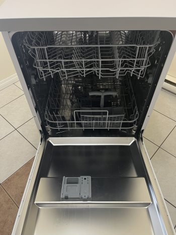 24? white portable GE dishwasher purchased from Home Depot for apartment and no longer needed. Has stainless steel tub, Piranha Hard Food Disposer and 12 place settings capacity.