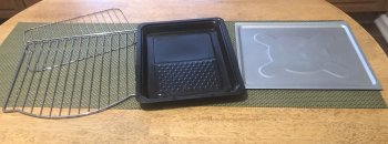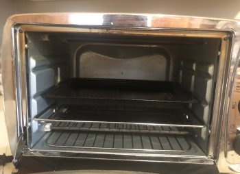 Oster toaster oven with 2 grates, bottom tray and baking sheet. Works well and in good condition, 17? x 11? x 10?