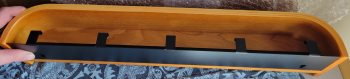 Brand new curved edge wooden box that is made to be hung on a wall and contains 5 hidden hooks inside of it. You can hang anything like keys, hats, towels, bags and clothing, and it looks very neat and organized without the hooks showing.