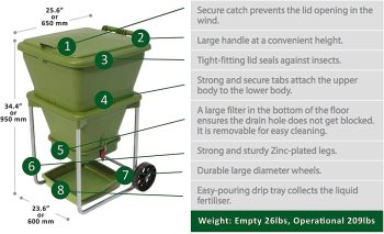 Capable of holding more than 6lb of compost worms, efficiently devouring your organic waste, cardboard, and compost into worm castings. 'Black Gold'