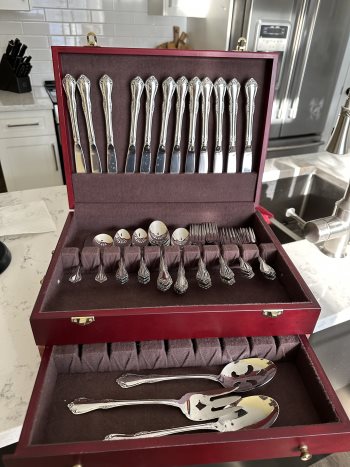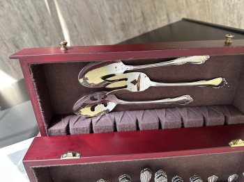 Serving utensils are also part of this set. In excellent condition- only used a handful of times!