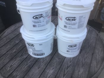 Right in Brandon,3 plastic pails 7.57 L last contained crinkle cut dill pickles,1 held 10 kg of margarine all 4 pails $10.00.