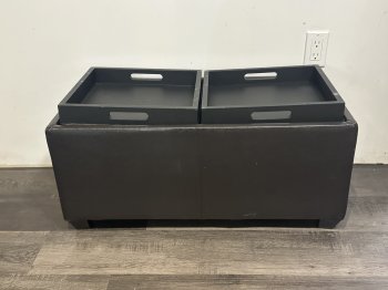Storage Ottoman. A great place to put extra blankets. top cushions turn over and turn into trays.