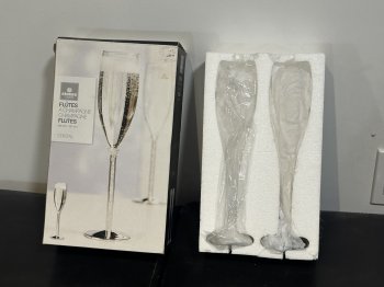 Set of 2 Champagne flutes. Never used, still in packaging.