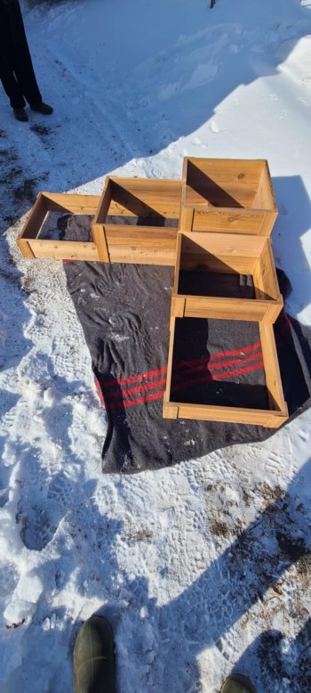 Cedar 3 Tier Garden Box Planter.. Unit is in 2 pieces, can be set up either way.. At 90 Degree set up, LWH 48"x48"x 16". 120.00 Can custom build any size boxes.. Text if possible 250-490-7811