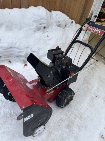Noma gran prix 5/23 2 stage snowblower with 5HP Tecumseh engine and 23 inch width. Electric start and tire chains. Carb cleaned, new Kevlar auger belt, new spark plug, new oil change, new primer. Starts, runs and works great. Selling for $300, text or email if interested.
