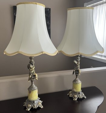 Vintage Cherub Brass & Marble Lamps