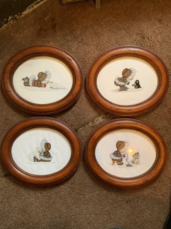 Beautiful set of 4 vintage needlepoints. Eskimo themed