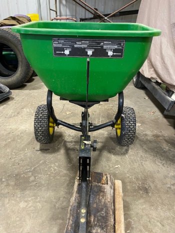 John Deere pull type spreader , like new, stored in shop when not in use .