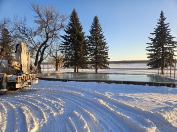 Wooden concrete forms i used to make a 30x60 rink after building my shop