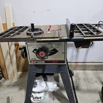 10 inch Craftsman Table Saw in good condition. Is on a steel roller base. Comes with wrenches, guides and manual