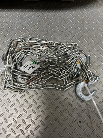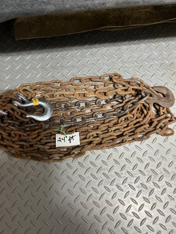 24 ft 3/8 in chain in vg condition with new hooks , also 20 ft 1/4 in chain with new hooks $22