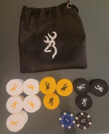 50 white, 25 yellow, 24 black plus two random and a carry bag.