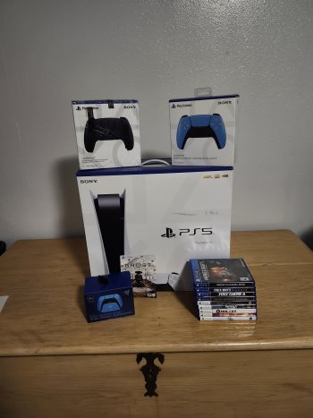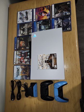 All the games are in immaculate condition just not sure about the just cause 4 because i never even checked it a friend just gave it to me the console itself is in very very good condition and was well taken care of didn't give me a single issue since I've had it and the 2 controllers are also in immaculate condition same with the charging dock very well taken care of bundle and the ghost of y?tei game is a digital download code all the boxes will also be included check out the pictures for more details, console is the 2021 model