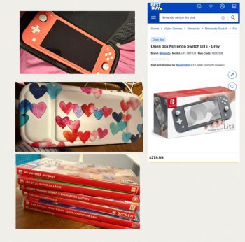 My daughter is selling her Nintendo switch lite (coral in color) with the charger/carrying case/6 games. Excellent condition. $250.00 for everything firm. Please text or call if interested. Thank you. 204-720-5848