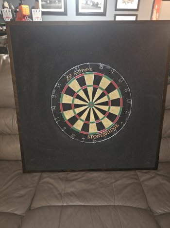 New never used dart board and surround. Has foam insert around the board itself. Has would stained frame. Slight wear on one side from being in storage room. Paid over $250 from creasys and simply never used it. Located in Brandon. $100.