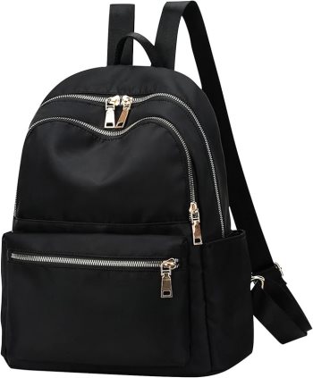 Black backpack purse with gold zippers