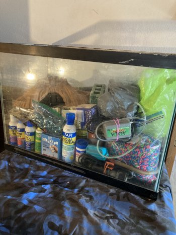 Great fish tank starter kit. 15 US gal tank (approx 1'x1'x2'). All the stuff to get you started is included - light, filter, gravel, vacuum, skimmer, heater, temp gauge. Can deliver depending on location.
