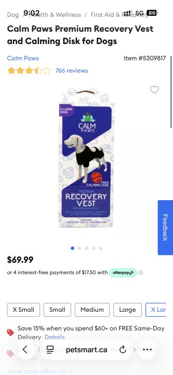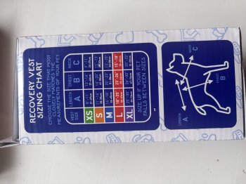 Dog recovery vest, brand new, did open box but never used. Bought for my dog after her spay surgery, but she actually didn?t try to lick her stitches so never used and forgot to return. Size large. Attached photo is picture of the box with it in it and a photo of it listed in store for $70 new.
