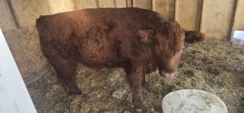 Steer Born June 2024 grain and grass fed. Located five miles south of angusville.