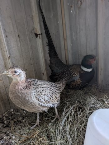 One pair of ring neck pheasants. Male is 3 years old but female is only one year old. Good pair, just getting out of them. Selling the pair for $45 obo. Call or text only. No emails.