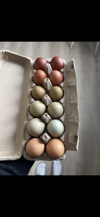 My flock includes 1 Pure French Blue Copper Maran SOP/dark bloodline, with also Pure Welsummer roos. Hens include, Welsummers, French Blue Copper Marans, Olive eggers/4th gen olive egger. (Potential get purebred Welsummer/Maran or , darker green eggs with speckles)